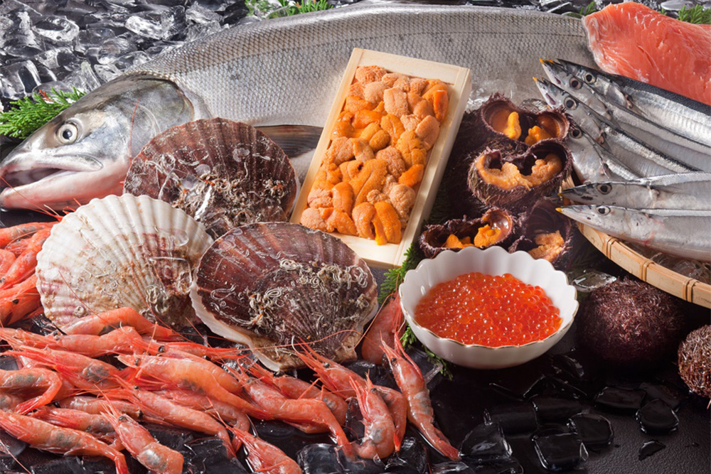 カニや甘エビなどの冷凍物が並ぶコーナーで、おすすめは和歌山の食文化”鯨肉”、鯨ベーコンをはじめ、「コロ」や「スジ」はおでんや炊き物に、赤身や尾の身はハリハリ鍋や刺身でもお楽しみいただけます。