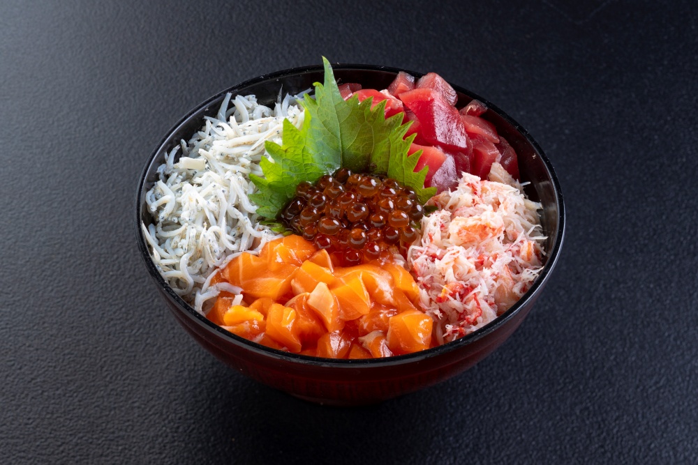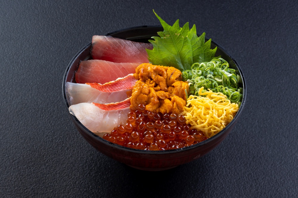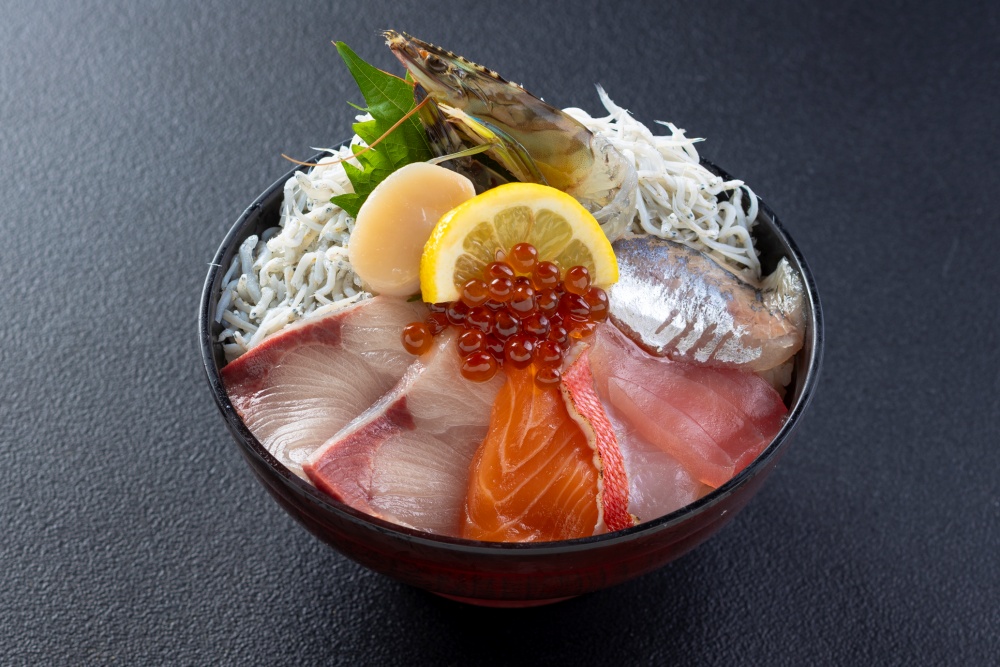 豪快なネタの海鮮丼、生うに丼、大粒いくら丼など、和歌山近海で水揚げされた金目鯛・太刀魚・赤いか・鰤・真鯛など、その日に厳選して仕入れた旬の魚のネタを使った丼も数量限定で販売!!